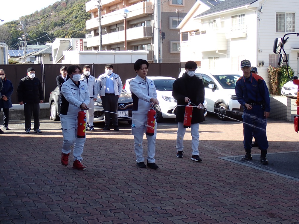 2026年 「芙蓉安全の日」安全講習会の開催 会社行事2026.01.23 1月14日は、例年開催している「社内防災・安全講習会」でした。 松山中央消防署の指導のもと避難及び消火訓練を行いました。 また、安全パトロール実施状況の報告や現場事故発生時の連絡模擬訓練を行うことで、社内の防災意識を一段と高めることができました。 消火訓練時の写真 現場事故発生時の連絡模擬訓練時の写真 一覧へ戻る トップページへ戻る トップページへ戻る
