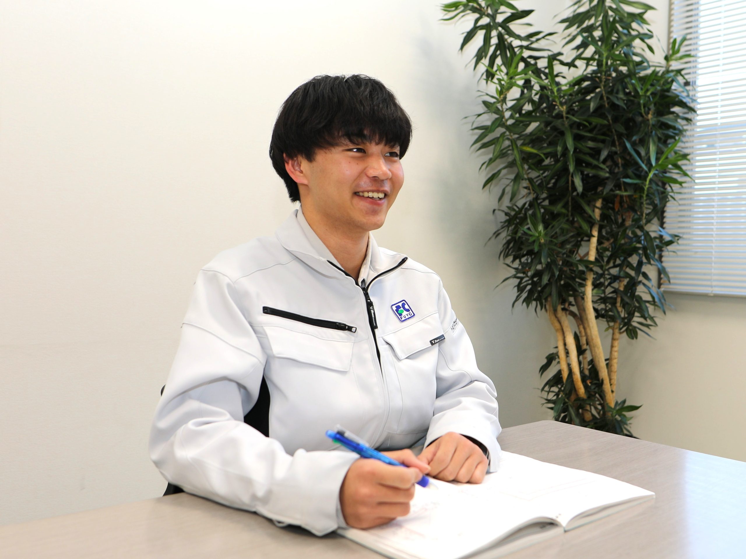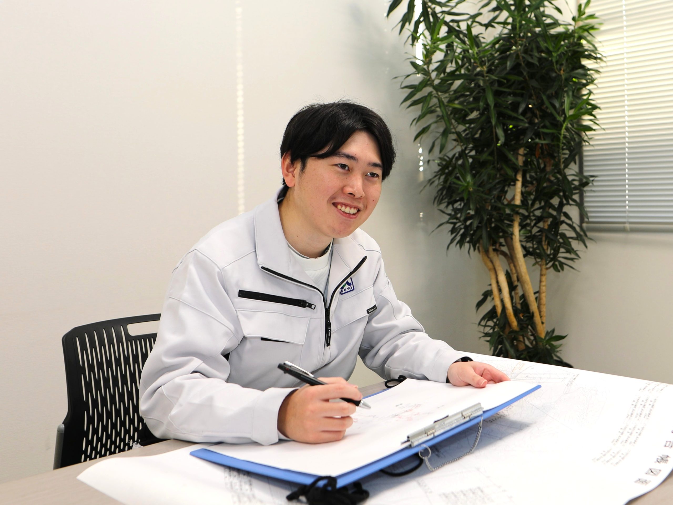 西日本豪雨の発生をきっかけに、自然災害から地域住民の方を守る仕事がしたいと考えていました。元々は、地元である広島で就職することを考えていましたが、当時コロナ禍でオンラインインターンシップが主流の中、実際に足を運んで体験できるインターンシップを探していたことがきっかけで当社を知りました。地域密着型企業であること、新人研修制度が充実していることが決め手となり入社を決意しました。